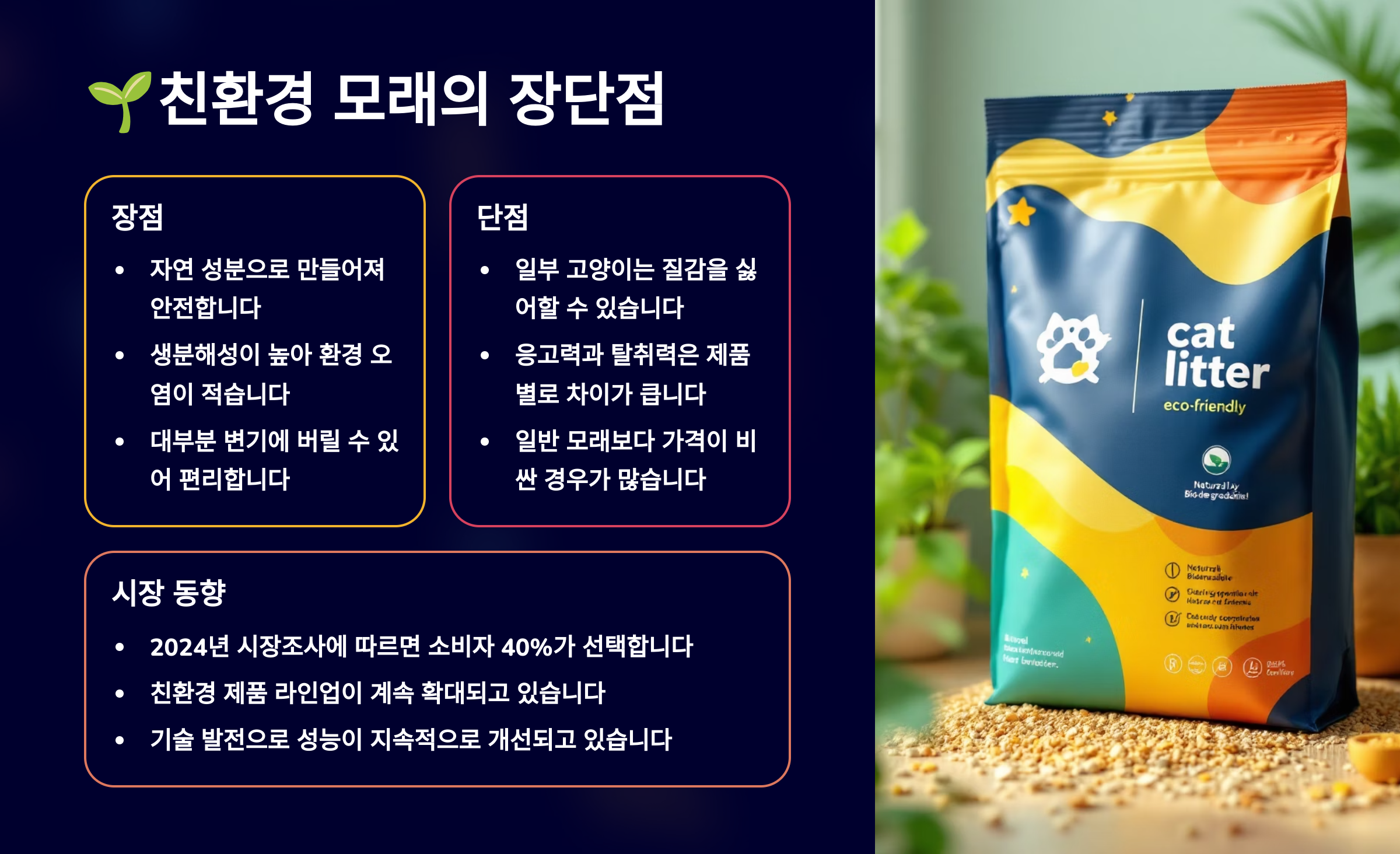 환경과 건강을 생각한다면 친환경 모래도 충분히 고려해볼 만한 좋은 선택이에요! 🌱