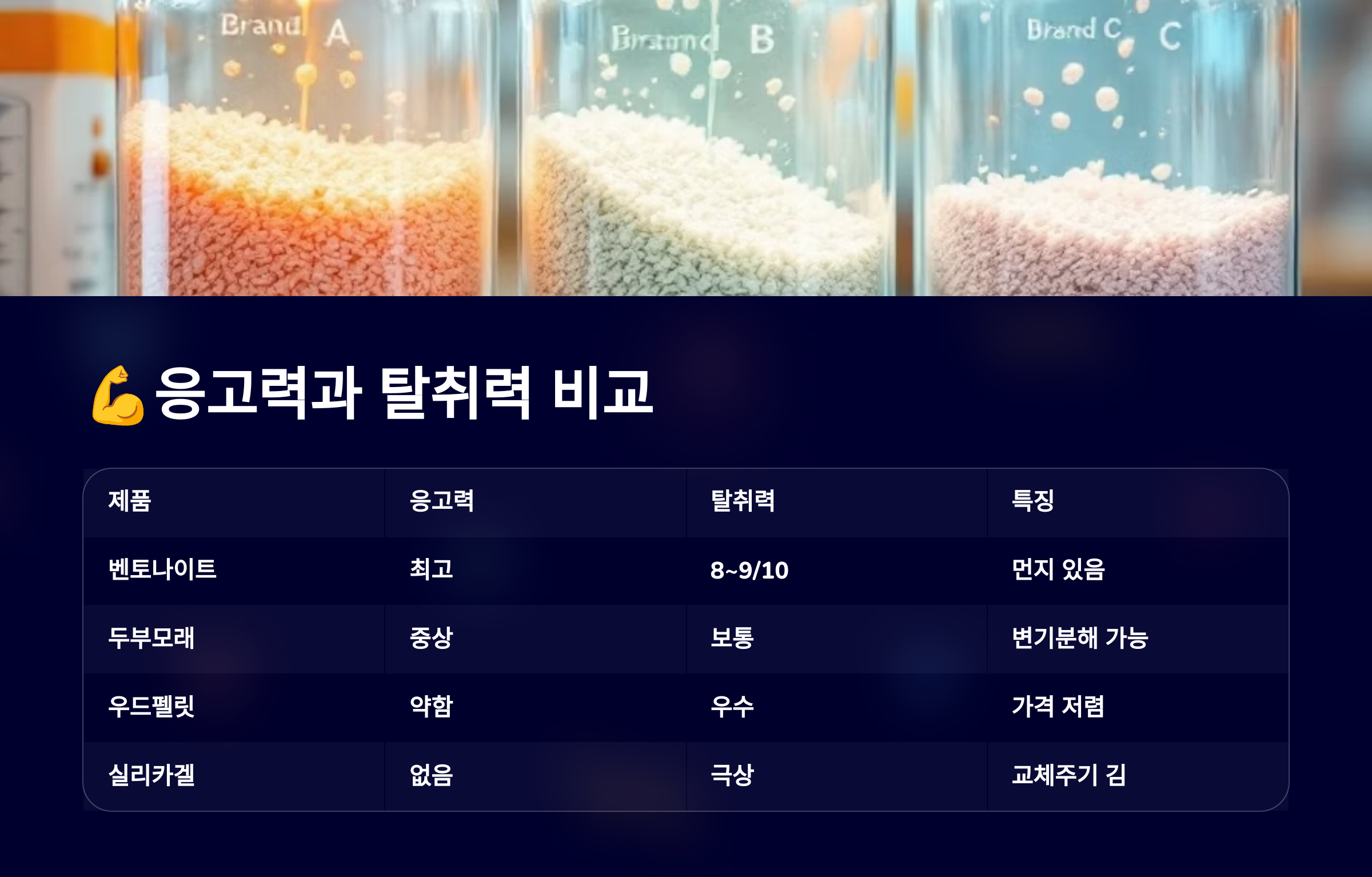 응고력과 탈취력의 균형을 고려해서 우리 상황에 가장 적합한 제품을 선택하는 게 중요해요! 💪