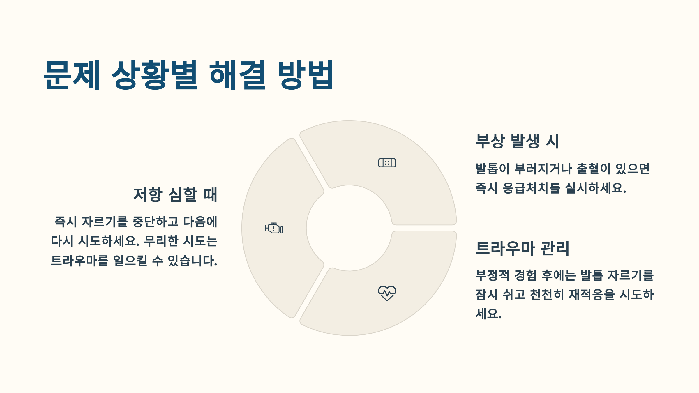 | 발톱 갈라짐 | 발톱 층 분리 | 날카로운 부분 제거 |