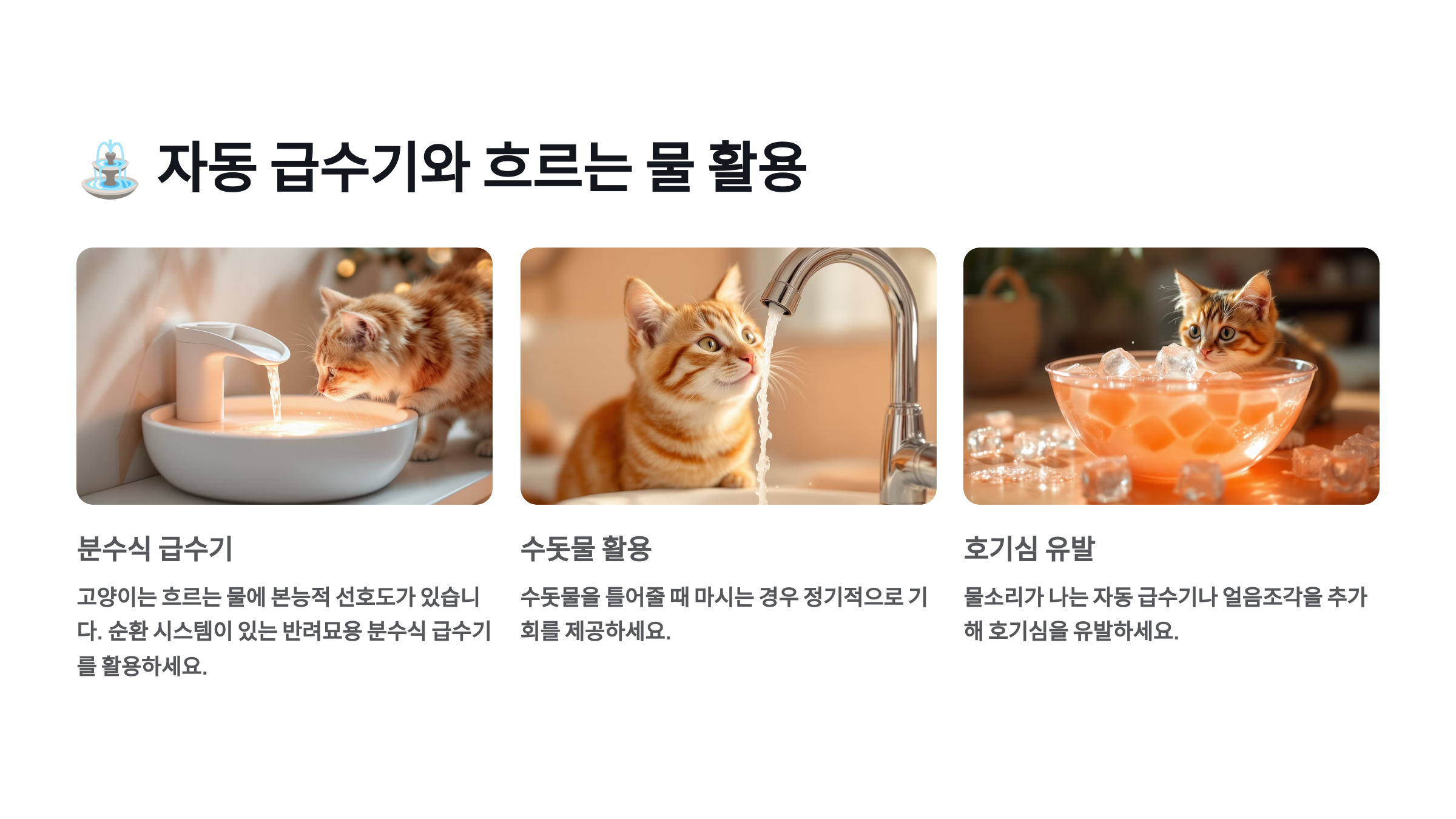 ⛲ 자동 급수기와 흐르는 물 활용