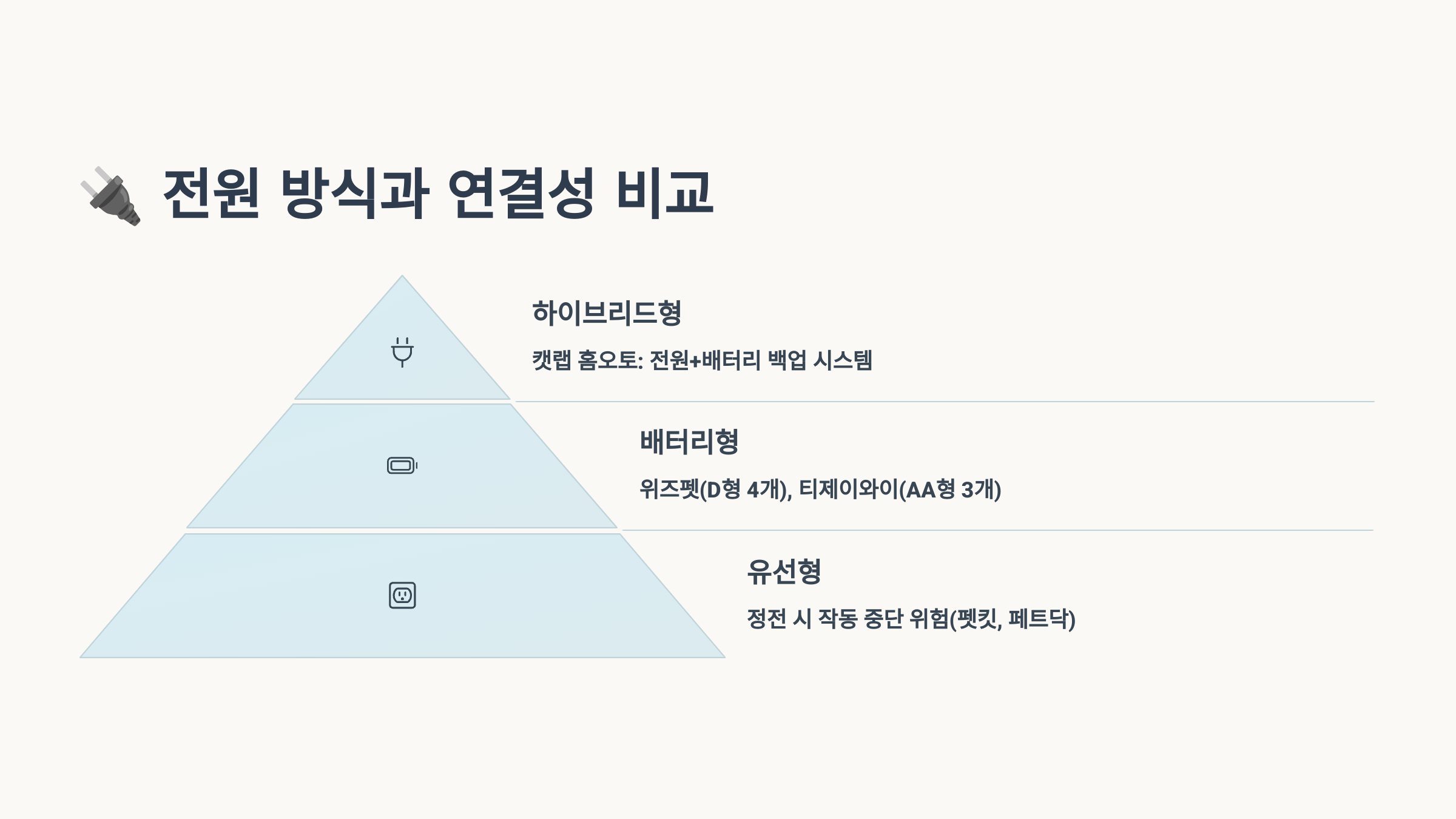 | 전원 방식 | 안정성 | 편의성 | 유지비용 |