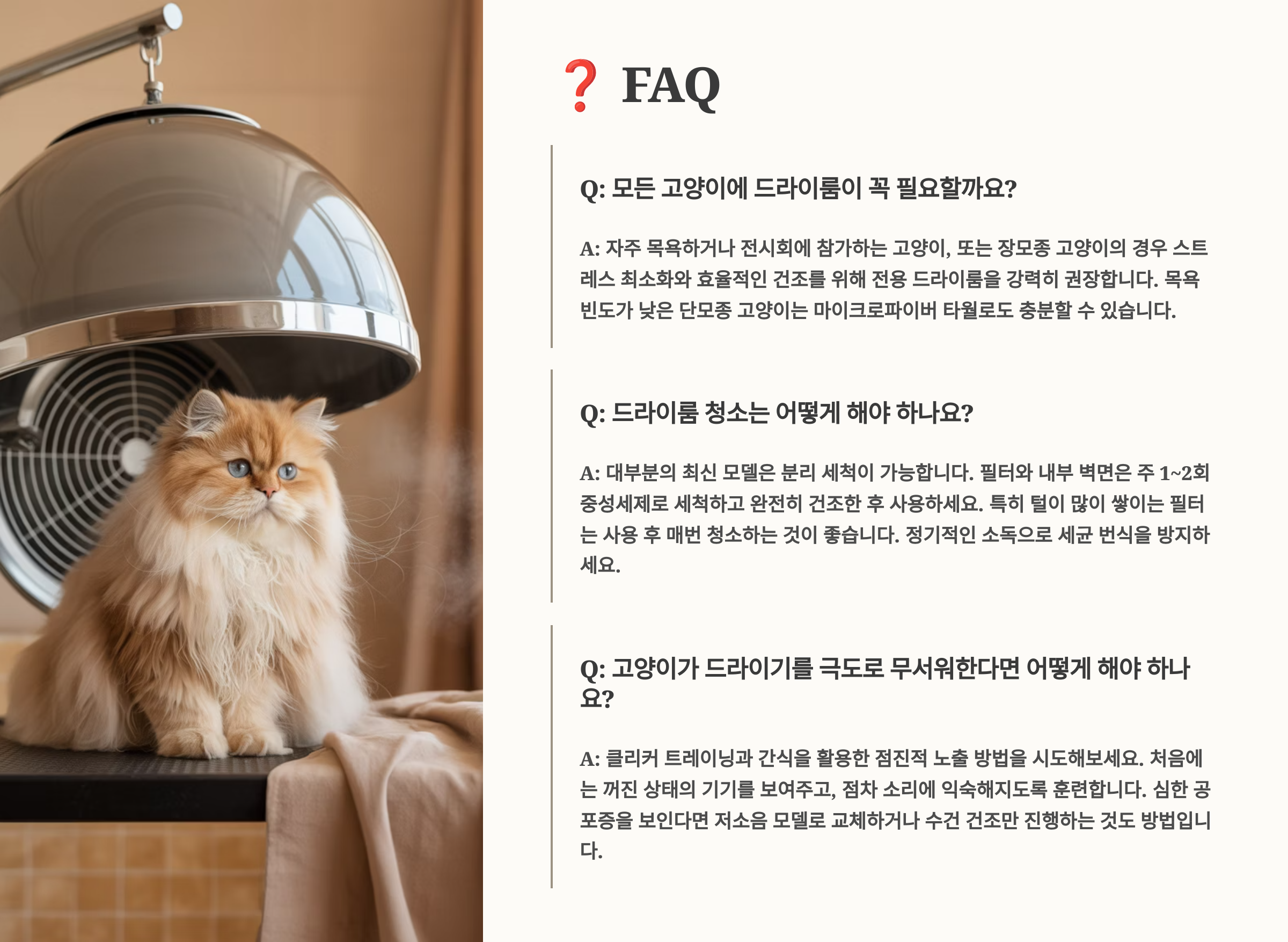 Q3. 고양이가 드라이기를 너무 무서워해요. 어떻게 해야 하나요?