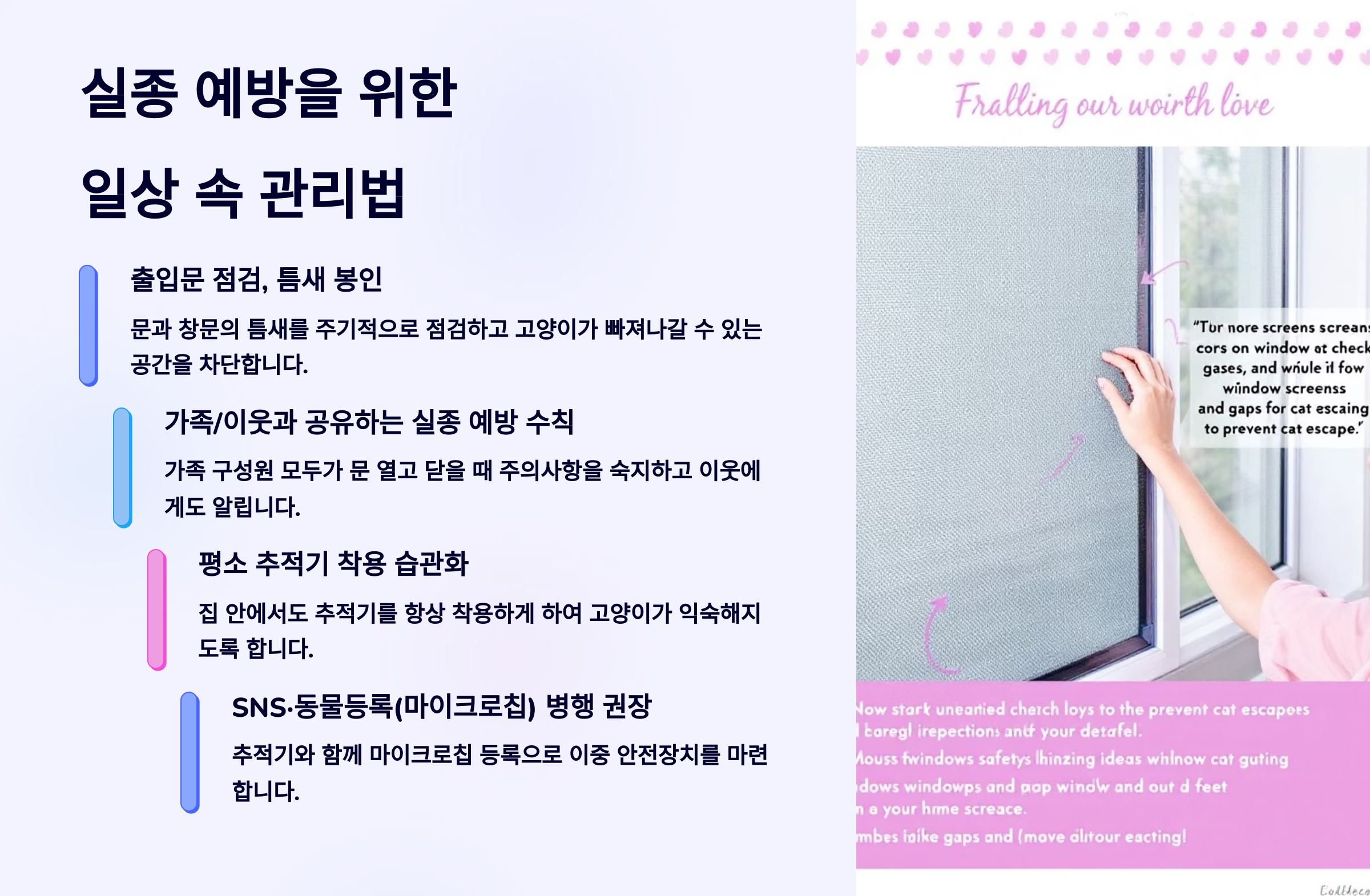 고양이 실종은 순식간에 일어날 수 있어요. 그 순간을 대비하는 가장 현명한 방법은 미리 훈련하고, 장비를 갖추고, 습관을 들이는 것이에요. 🧭