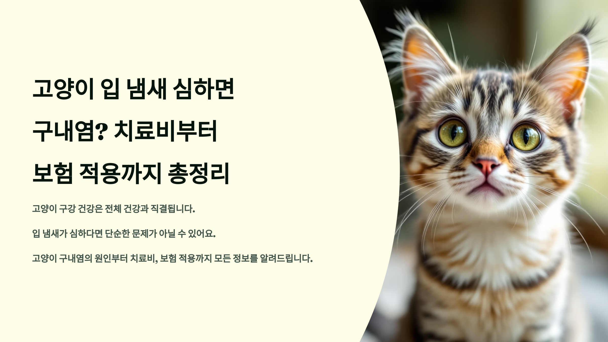 고양이와 얼굴을 맞대고 있는데 입 냄새가 너무 심하다면 단순한 구취 문제가 아닐 수 있어요. 특히 썩은내, 비릿한 냄새, 신 냄새가 난다면 구내염을 의심해봐야 해요. 구내염은 고양이의 삶의 질을 심각하게 떨어뜨리는 질환이고, 무엇보다도 지속적인 통증을 유발해요.