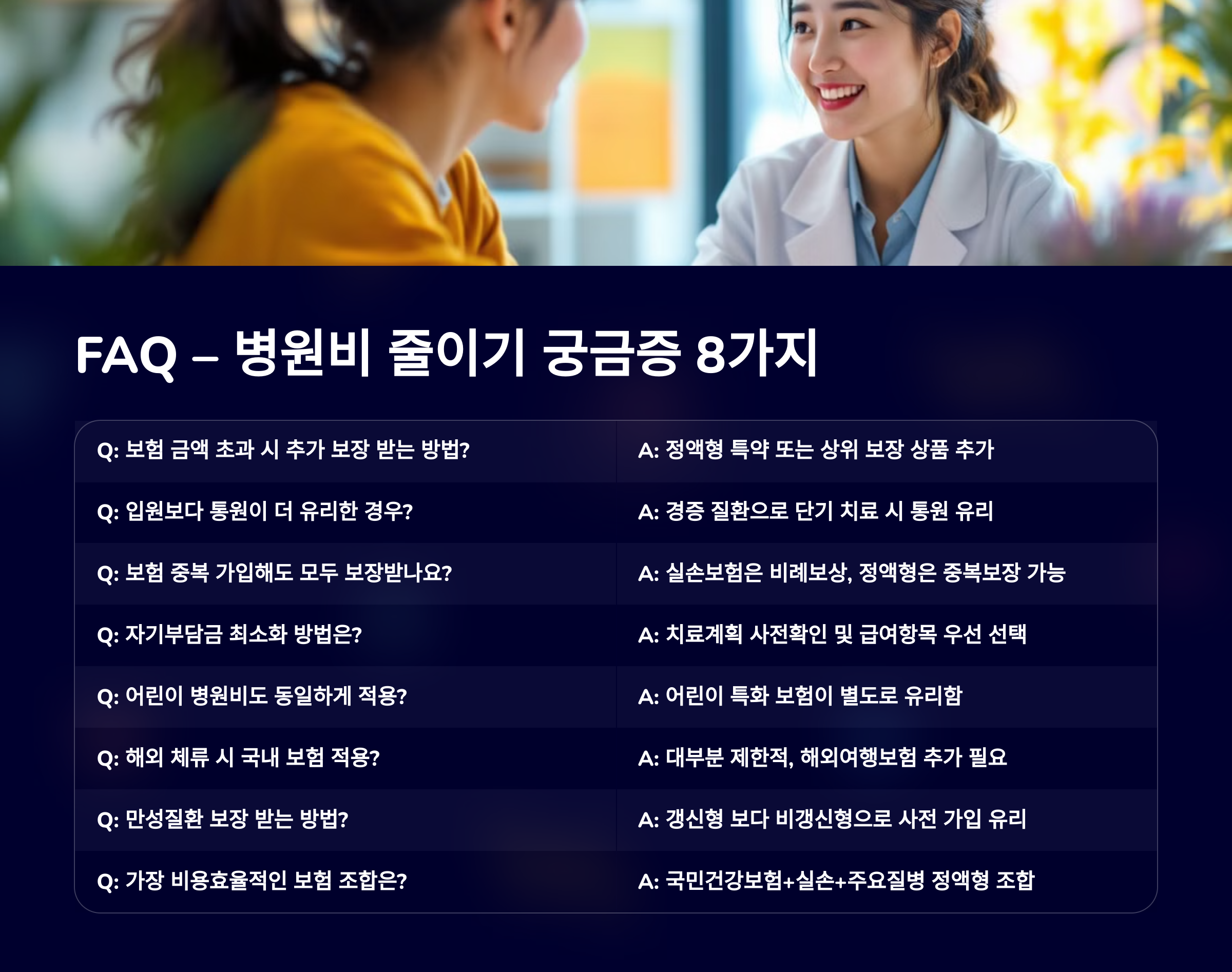 ❓ 8. FAQ – 병원비 줄이기 궁금증 8가지