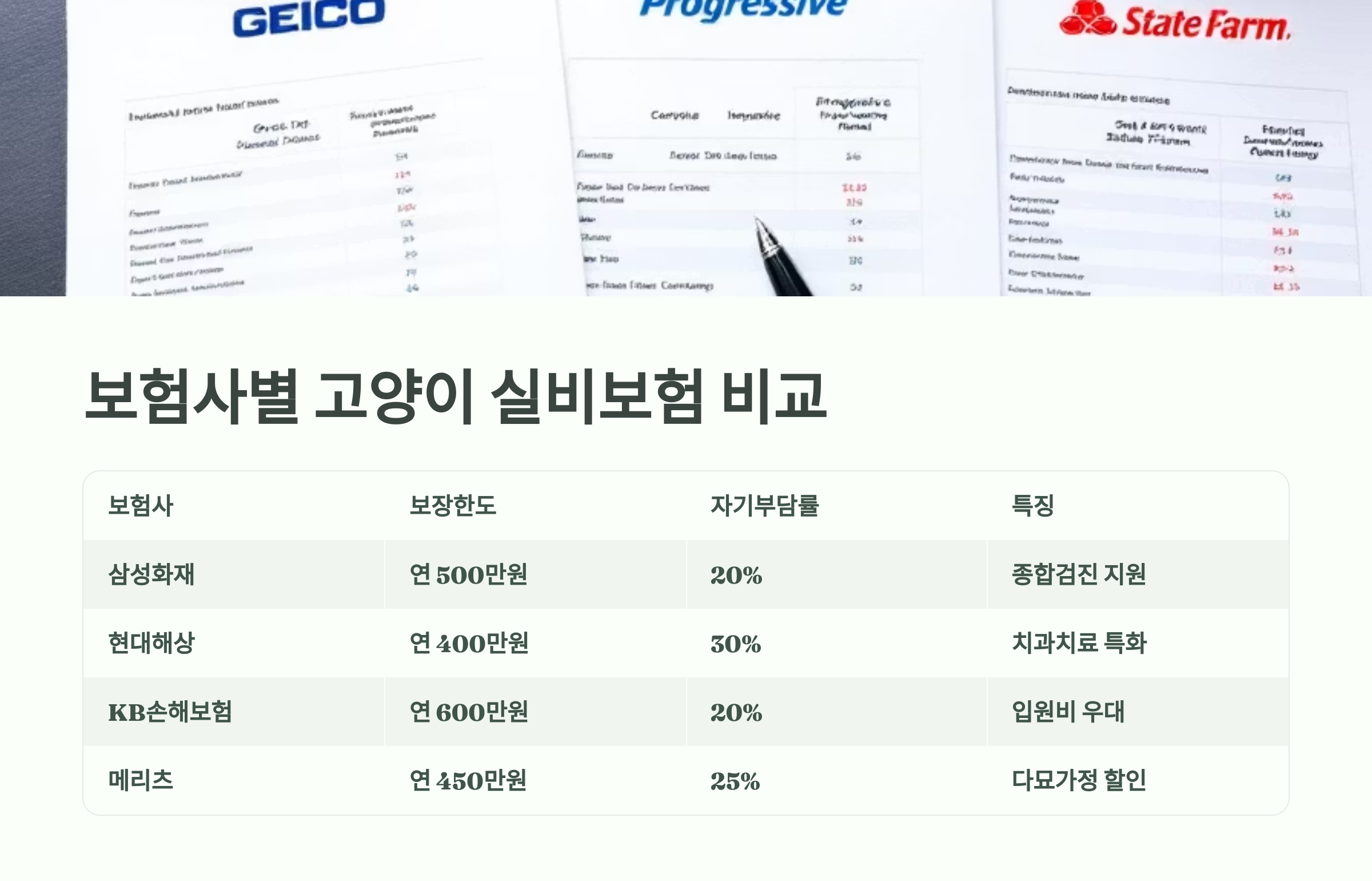 다음은 실제 고양이 실비보험 상품을 보험사별로 비교 분석해드릴게요! 📊🐱