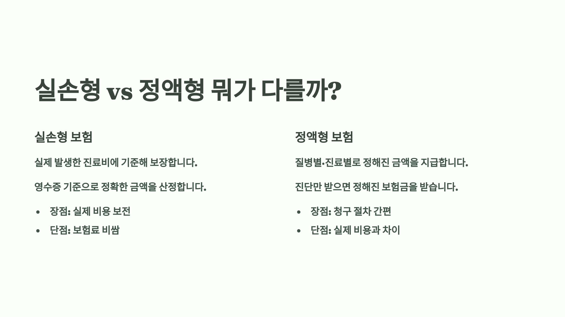 ⚖️ 4. 실손형 vs 정액형 뭐가 다를까?