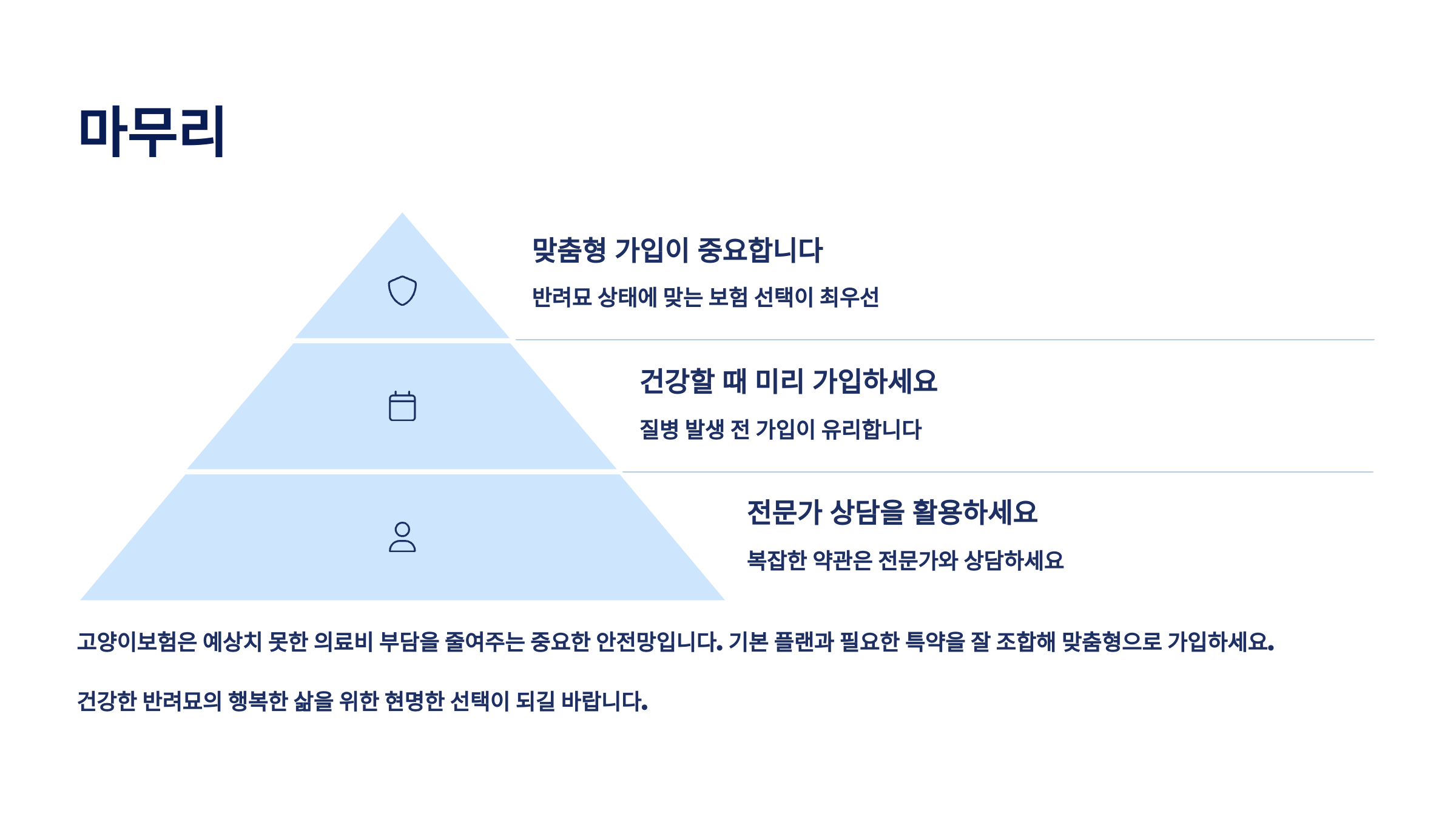 🐾 고양이의 나이와 품종, 현재 상태를 고려해서 맞춤형 보험을 선택하는 것이 가장 중요해요. 특히 소형묘·단모종이라도 생활 패턴에 따라 리스크는 달라질 수 있어요!