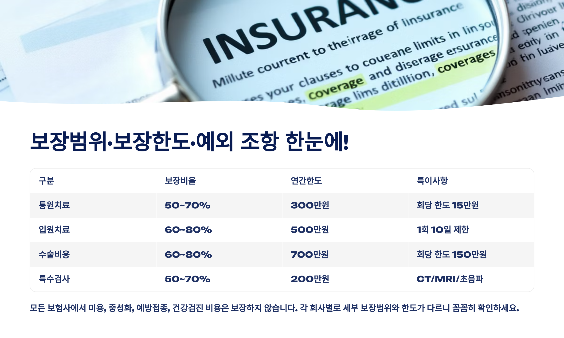 📊 보장범위·보장한도·예외 조항 한눈에!