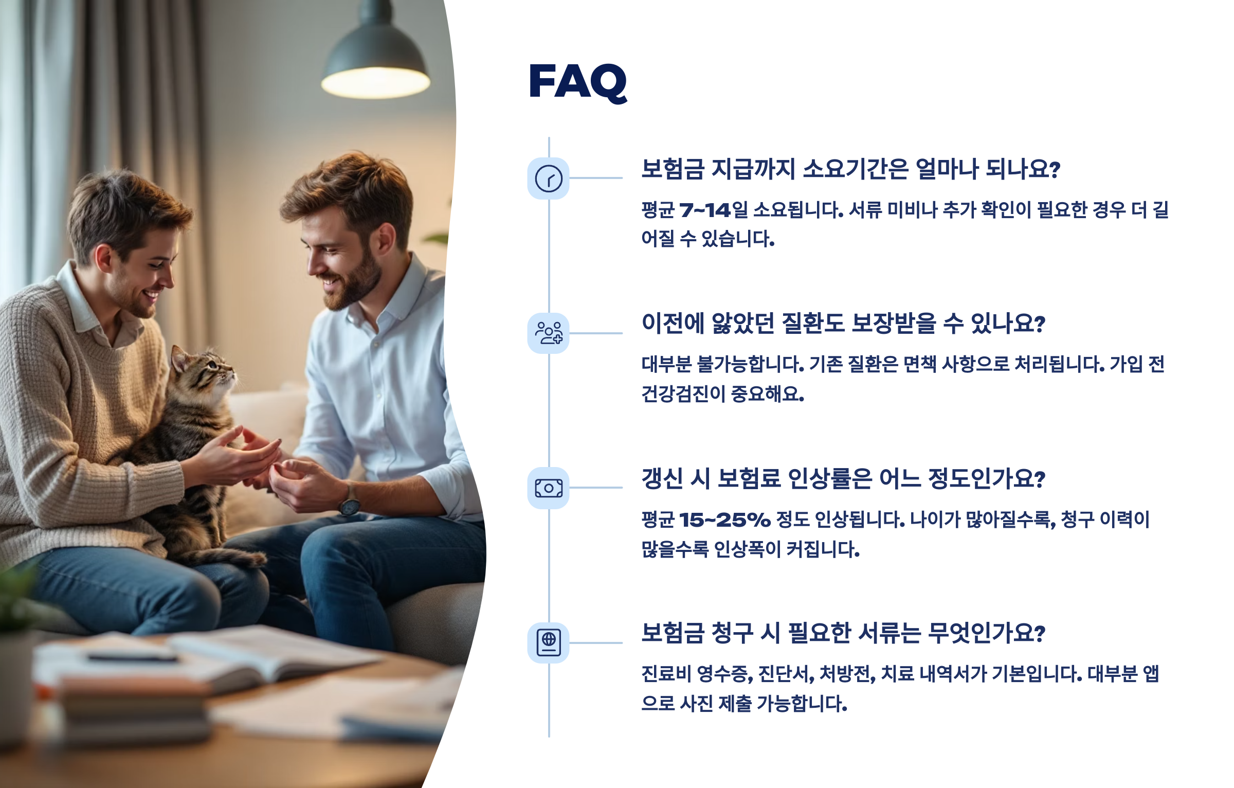 이제 다음은 ❓ FAQ 보험 가입을 고민하는 집사들이 가장 많이 묻는 질문 8가지에 대해 정확하고 현실적인 답변을 드릴게요! 😸📘